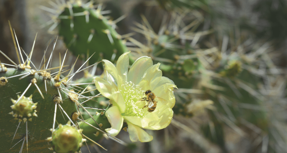Na Boneiru nan ta yam’é tuna. Na Kòrsou e ta konosí komo infrou. Su sumpiña ta hinka duru i ta keda pegá den bo kueru. Ta difísil pa saka sumpiña di tuna. Hende no gusta e káktus aki, ku ta na abundansia na Boneiru. Pero e tin su bunitesa. Aki por mira su flor i un abeha disfrutando di su kuminda.