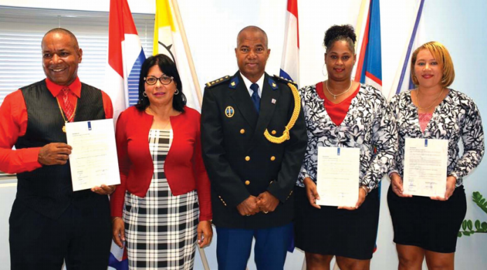 E siman aki Onnie Emerenciana i su koleganan Jemima i Illeana a hura komo agente polisial ekstraordinario. Nan ta ámtenarnan ku ta atendé ku ‘leerplicht’, obligashon pa muchanan bai skol. Na ta kai bou di e direktorado Komunidat i Kuido. Na hefe direkto Ally Pourier tambe tabata presente. Hefe di KPCN a firma e dokumentonan korespondiente