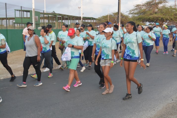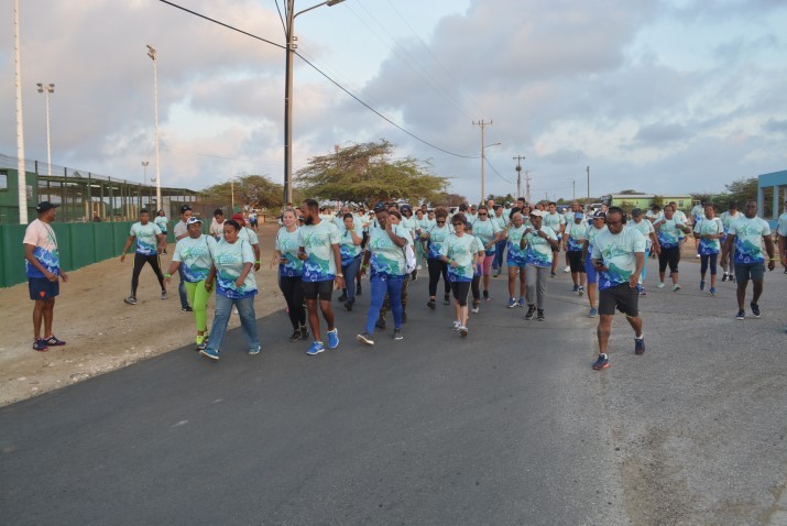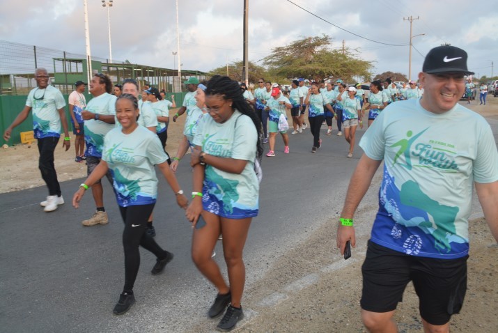 Djadumingu último den oranan tempran di mainta, pa ta mas eksakto mitar di shete mainta, tabatin e di dos edishon di e kaminata Fun Walk di 14 edishon di e kompetensianan anual di windsurf, ProKids 2018, den bahia di Sorobon. E kaminata a start na Jossy Boekhoudt Ballpark na Tera Kòrá despues di e “warm-up” na enkargo di Junny Gill di Indebon. Mas di 300 hende riba pia e mainta aki pa e kaminata ku sigur tabata un éksito. Tur hende e kana den nan shirt di “Fun Walk” lagando e karetera bastante kolorido na e salida di e kaminata. Riba e diferente potrètnan por mira algun bista di e salida di e kaminata na Jossy Boekhoudt Ballpark na Tera Kòrá djadumingu último mitar di shete mainta.