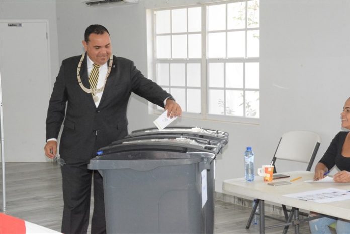 Elekshon a bai relativamente trankil ayera. Loke tabata notabel ta e kantidat di hende ku a kuminsá vota for di tempran den oranan di mainta, loke anteriormente no tabata e kaso. Riba e foto momentu ku gezaghebber Edison Rijna ta depositando su voto.