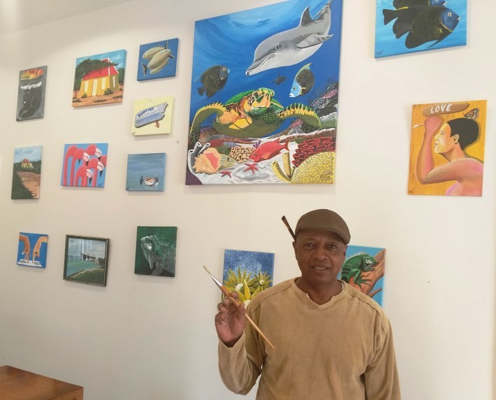 E área di resepshon di Tourism Corporation Bonaire (TCB) ta kombertí un bes mas den un ekshibishon di arte di obranan di Ronald ‘Tony’ Trinidad. TCB ta ekstendé un invitashon pa bin bishitá e sala di galeria di arte situá na Kaya Grandi 2 pa atmirá e pinturanan riba canvas di e artista Tony i alabes por kumpra e artenan.