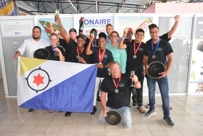 Tim Kulinario a logra diferente premio un bes mas na Miami i a regresá Boneiru djarason. Un kantidat di persona tabata na Aeropuerto Flamingo pa risibí e miembronan di tim kulinario despues di a kompetí i a gana diferente premio for di ‘Taste of the Caribbean 2019’. Un alegria enorme i emoshon momentu ku ámbos grupo a topa otro, esta famia i e partisipantenan.