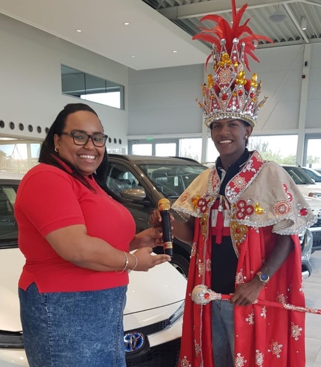Riba potrèt mira momento di entrega di e mikrofon di oro kual Rodrigues Music & Service Center a fasilitá i modifiká den tempu rèkert. E mikrofon ta karga nòmber, fam i título di Boneiru su Rei di Tumba.