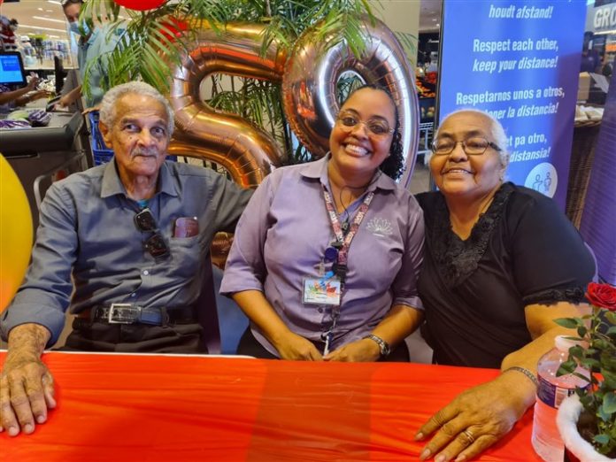 Richard i Ifna Heyliger a kumpli 59 aña den barku matrimonial djasabra. Komo ku tur dia nan ta sinta desayuná na Van den Tweel Supermarket, Cheryl Blanco, empleado di Van den Tweel, a prepará un sorpresa pa nan. Por mira Cheryl Blanco sintá meimei di nan.