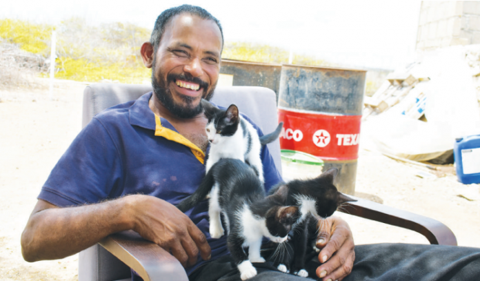 Curtis de Palm ta un persona ku tin amor grandi pa naturalesa. Esaki a pone ku el a disidí tambe di bai biba na kunuku na Punta Blanku. Un kunuku ku tabata di su welo Pedon de Palm. Foto ta mustra Curtis ku tres pushi ku e ta kria. Dos di nan yama Any i Time. Esun di tres ta Amy. Hopi aña pasá Curtis tabatin un negoshi yamá ‘Anytime Shake’. E siman aki por mira Curtis den un programa ‘Aki Boneiru’ na Bonaire.tv