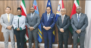PHLIPSBURG – Un delegashon di Ministernan di hustisia di Kòrsou, Aruba i Sint Maarten, huntu ku e hefenan di kuerpo polisial, ofisialnan di polis i konseheronan, a konkluí un bishita di trabou produktivo na Repúblika di Sürnam di 23 pa 26 di ougùstùs. E bishita tabata organisá riba invitashon di Kenneth Amoksi, Minister di Hustisia i Polis di Sürnam. Durante un sena di bon biní ku e minister di hustisia di Sürnam, e evento a proveé un plataforma pa interakshon i diskushon entre e delegashon i nan partnernan Surinameño. E okashon a sirbi tambe pa atendé e signifikashon históriko entre e ministernan di hustisia di e kuater paisnan. E programa a inkluí bishita na e institutonan di kadena hudisial. A konkluí e bishitanan ku presentashonnan informativo dor di ekspertonan riba vários tereno.