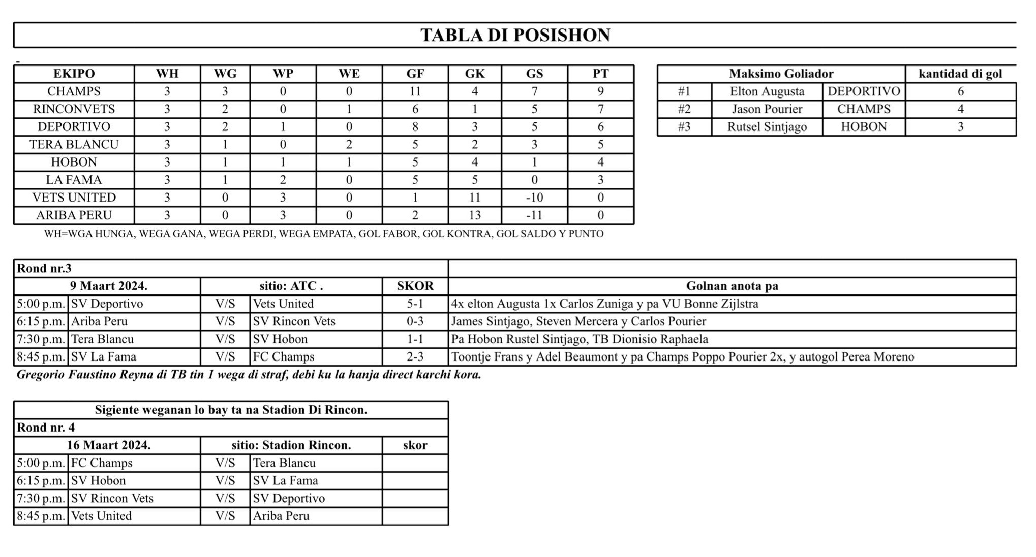 Deporte Kampionato futbòl 50+ ta kontinuá fin di siman March 14, 2024 FacebookTwitterPinterestWhatsApp E kontenido aki ta solamente pa abonado Registrá Already a member? Log in here