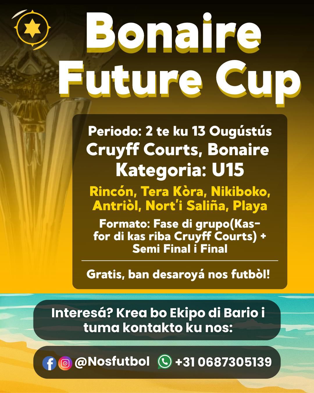 Deporte Torneo di futbòl pa mucha July 25, 2025 FacebookTwitterPinterestWhatsApp E kontenido aki ta solamente pa abonado Registrá Already a member? Log in here