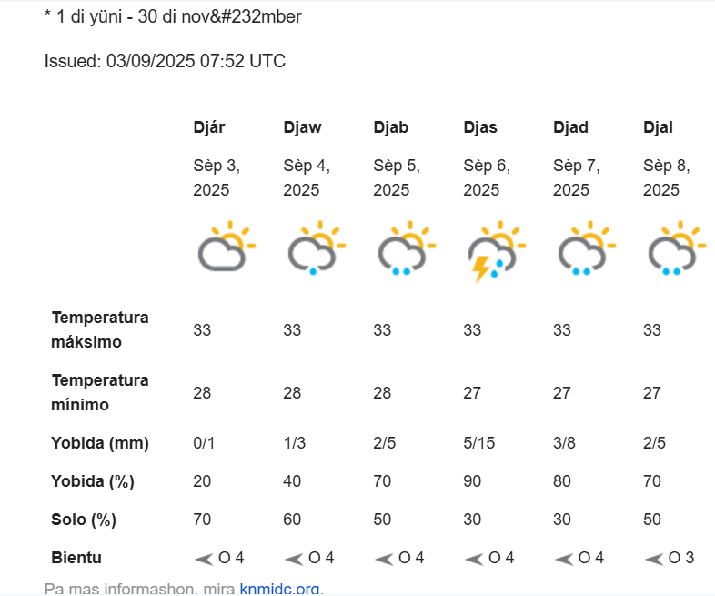 Lokal Pronóstiko di tempu pa Boneiru September 4, 2025 FacebookTwitterPinterestWhatsApp E kontenido aki ta solamente pa abonado Registrá Already a member? Log in here